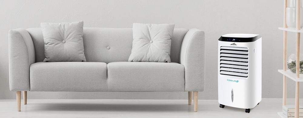 Ochladzovač vzduchu Eta kombinuje 4 funkcie v jednom – vzduch je nielen ochladzovaný, ale aj zvlhčovaný, prečisťovanie a funguje ako klasický ventilátor. Prístroj funguje na princípe odparovania vody bez akejkoľvek chémie. Súčasťou je veľká odnímateľná nádoba na vodu s objemom 10 litrov, do ktorej je možné pridať chladiace boxy alebo ľad, pre lepšie výsledky chladenia.