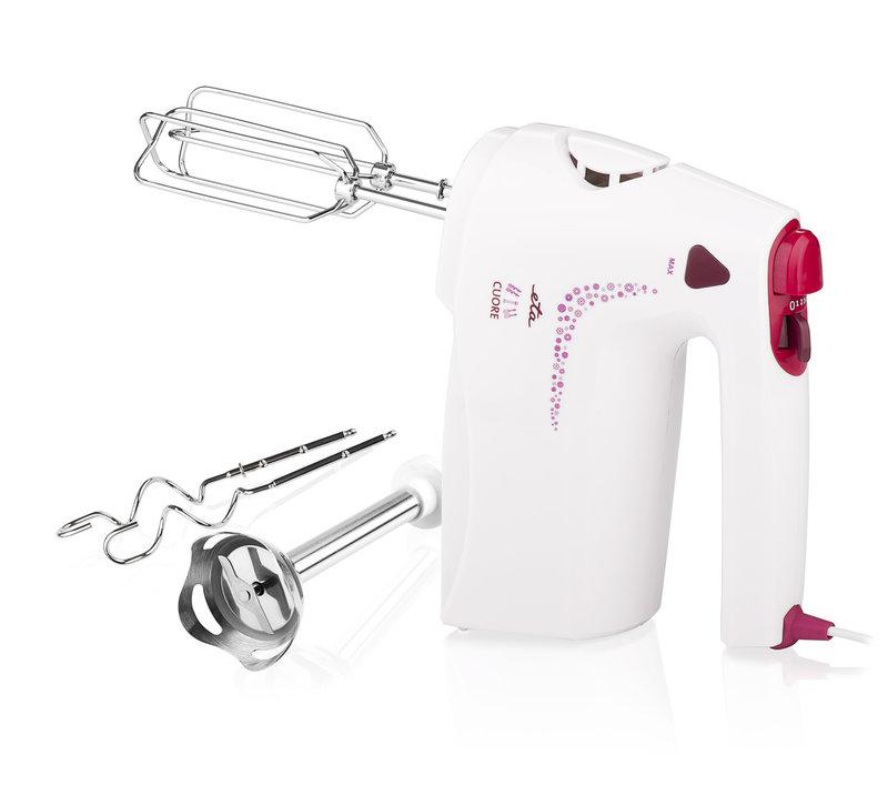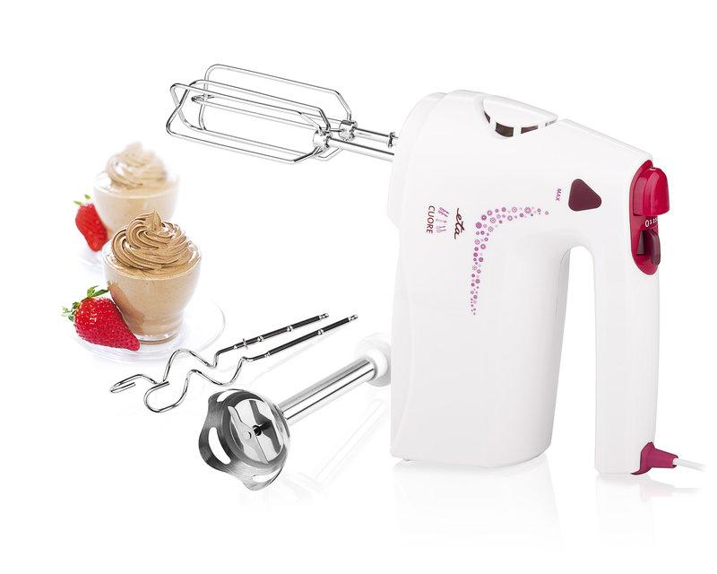 Ručný šľahač, Príkon (W): 350, Počet rýchlostí: 4, Pulzný spínač, Hlučnosť (dB): 85, Dĺžka prívodného kábla (m): 1.3, Prevedenie výrobku: biela farba