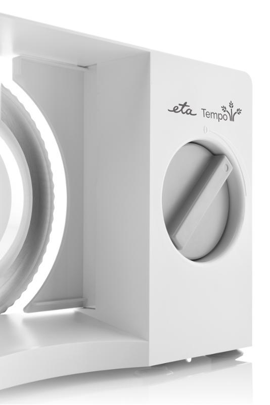 Elektrický krájač ETA Tempo je vhodný pre krájanie širokého sortimentu potravín. S jeho pomocou ľahko nakrájate chlieb, pečivo, syry, salámy, ovocie a zeleninu na plátky. Kvalitný nerezový nôž značky Solingen s vrúbkovanou čepeľou je ľahko odnímateľný a jeho údržba je tak jednoduchá. Pomocou otočného regulátoru plynule nastavíte hrúbku rezu od 0 do 20 mm. Krájač Tempo je vybavený bezpečnostným spínačom, ktorý zaistí bezpečnú obsluhu. Protišmykové nožičky zaisťujú stabilitu na pracovnej ploche počas krájania. Plastový podávač je rozoberateľný – elektrický krájač ETA Tempo tak jednoducho uskladníte.
