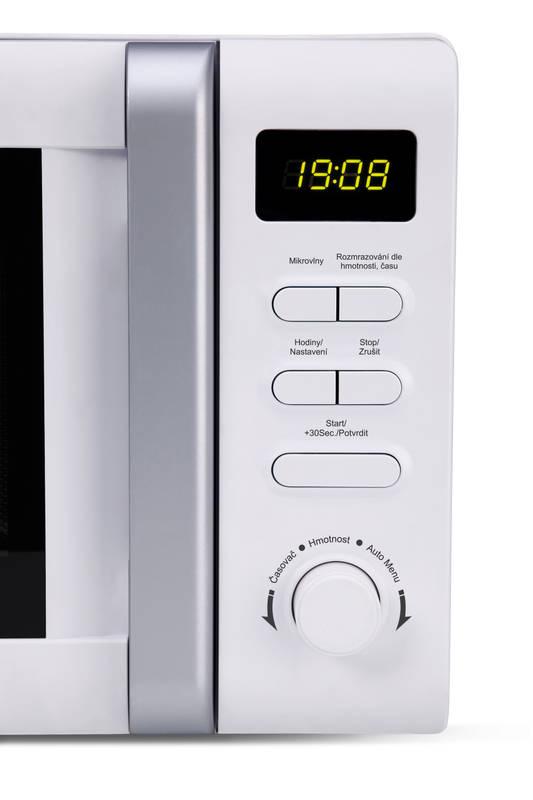 Voľne stojaca mikrovlnná rúra, Digitálny displej + hodiny, Mikrovlnný výkon 700 W, Objem 20 l, Časovač do 95 min., Príkon 1200 W, 5 stupňov mikrovlnného výkonu, 2 stupne rozmrazovania