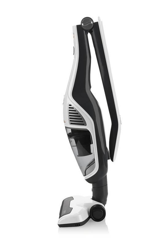 - Príslušenstvo: rotačná parketová hubica, štrbinová hubica, kefka, nástenný držiak s integrovaným nabíjacím systémom