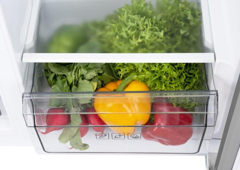 Vnútorný priestor je členený sklenenými policami, transparentnými zásuvkami a priehradkami v dverách. Ak vám navyše posvieti úsporné, ale výkonné vnútorné LED osvetlenie, je perfektný prehľad o uložených potravinách zaručený.