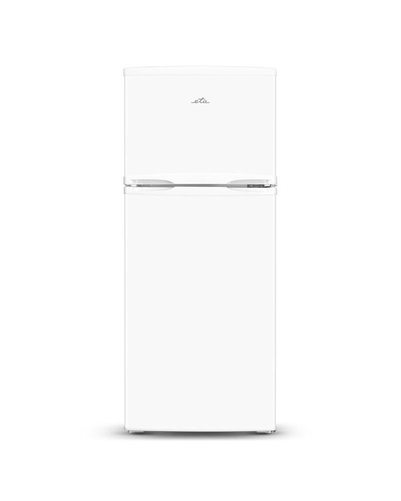 Dvojdverová chladnička ETA vďaka svojej jednoduchosti zapadne do každej kuchyne. Chladiaci priestor s objemom 112 l rozdelujú 2 výškovo nastaviteľné police z bezpečnostného skla. Navyše tu nájdete aj box na uchovávanie čerstvej zeleniny a 3 praktické bočné priehradky na skladovanie vody či studených omáčiek.