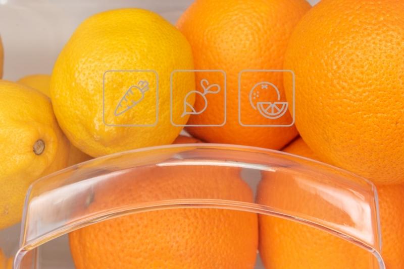 Chladnička je vybavená moderným LED osvetlením, ktoré je o 90 % úspornejšie ako klasická žiarovka a navyše sa vyznačuje oveľa lepšou svietivosťou, vďaka ktorej budete mať oveľa väčší prehľad o obsahu chladničky. LED osvetlenie tiež prispieva k stálosti teploty vo vnútri, pretože nevytvára nežiaduce teplo na rozdiel od klasickej žiarovky.
