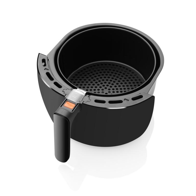 Teplovzdušná fritéza je praktickou pomocníčkou na prípravu hranoliek, mäsa, rýb a mrazených polotovarov ako sú rybie prsty. Rovnako dobre poslúži tiež k opätovnému ohrevu hotových pokrmov. Bez obáv jej však môžete zveriť aj pečenie torty, sladkého či slaného koláča alebo muffinov.