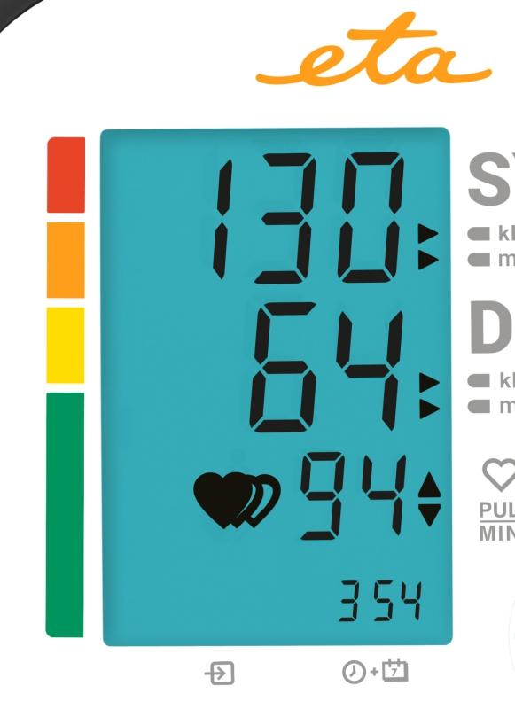 Tlakomer ETA229790000 má pamäť pre 2 osoby s možnosťou uloženia nameraných dát. Maximálna kapacita tlakomeru je 2 x 60 záznamov . Na prevádzku ETA tlakomeru sú potrebné 4 ks batérií AAA, ktoré sú súčasťou balenia.
