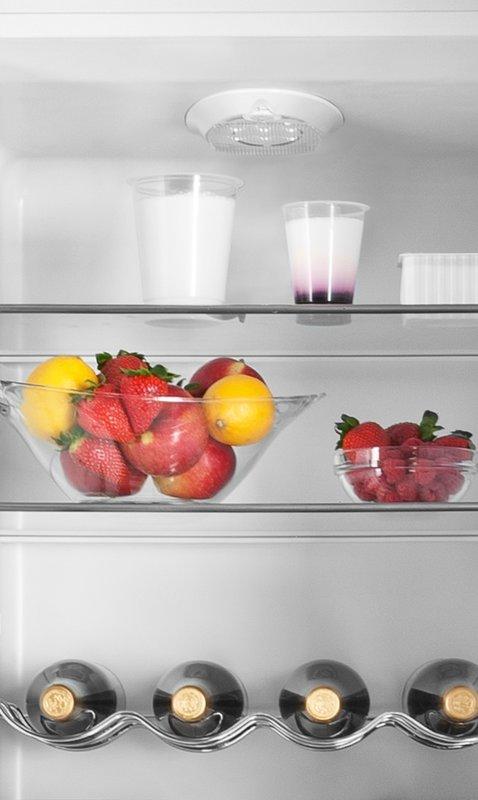 Chladnička je vybavená moderným LED osvetlením, ktoré je o 90 % úspornejšie než klasická žiarovka a naviac sa vyznačuje omnoho lepšou svietivosťou, vďaka ktorej budete mať oveľa väčší prehľad o obsahu chladničky. LED osvetlenie tiež prispieva k stálosti teploty vo vnútri, pretože nevytvára nežiadúce teplo na rozdiel od klasickej žiarovky. Špeciálny box s Fresh zónou umožňuje uchovať mäso, ryby aj údeniny oveľa dlhšie čerstvé. V tejto časti chladničky je totiž nastavená teplota na nižšiu teplotu než v priestore chladničky. Nežiadúce pachy sa naviac nedostanú mimo túto priehradku. Pri prípadnom výpadku prúdu sa nemusíte báť, že by ste prišli o svoje potraviny – chladnička je totiž schopná uchovať ich v plne zmrazenom stave takmer celý jeden deň.
