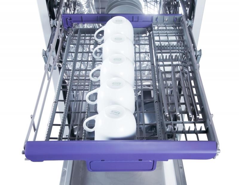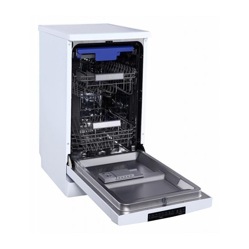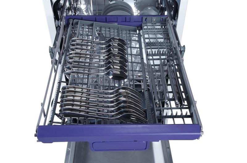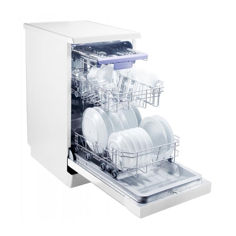 Zúžené prevedenie štandardných modelov umývačiek riadu – 44,8 cm je riešením pre menšie kuchyne. Umyje 10 sad a to až 8 prednastavenými programami. Vybrať si môžete z programov AUTO, intenzívny, normálny, ECO umytie, sklo, rýchly program, zrýchlený 90 min. program a program predumytia. Môžete využiť aj doplnkové funkcie, ktorými sú extra sušenie, extra čistenie, funkcia expres alebo zónové umývanie. Vo vnútri umývačky je samostatná príborová zásuvka a 2 veľké zásuvky so sklopnými priehradkami na tanieri. Horný koš si môžete nastaviť podľa potreby.