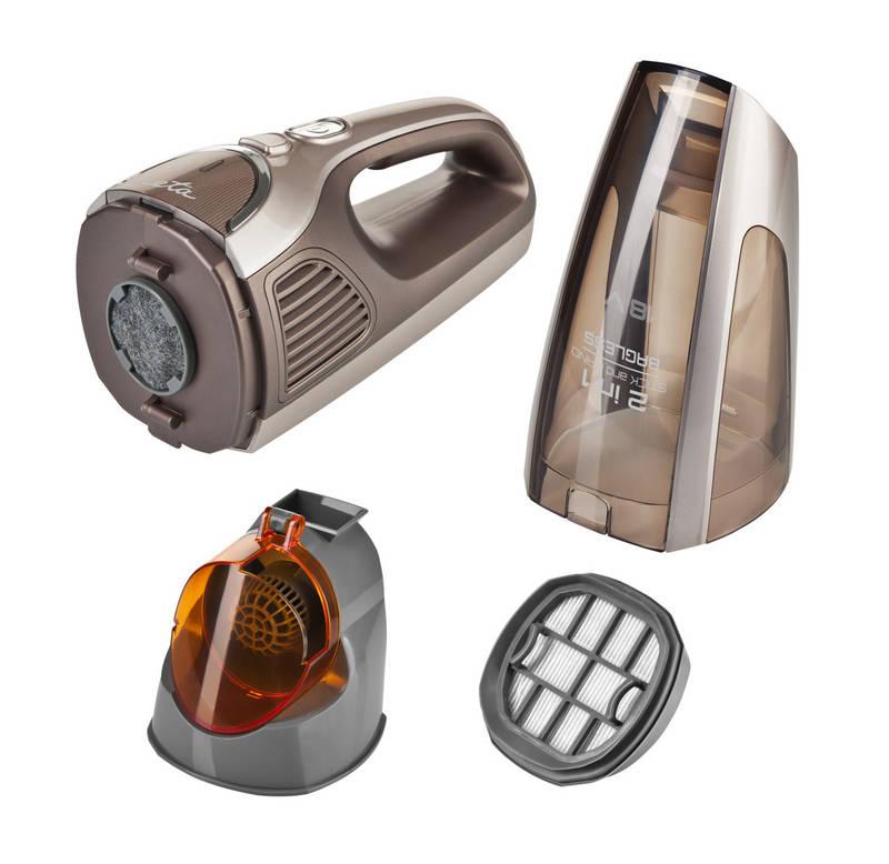 Vysávač 2v1, Akumulátorová prevádzka, Výdrž až 20 min., Doba nabíjania 5 hod., 0,4 l prachová nádoba, Cyklónový filtračný systém, HEPA filter, Rotačná parketová hubica, Štrbinová hubica