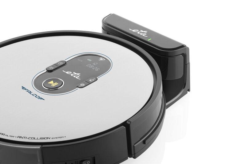 Vysávač ETA Falco Smart disponuje digitálnym motorom s vysokým výkonom a extra dlhou životnosťou. Vďaka svojmu slim dizajnu s výškou iba 7,8 cm vysaje bez problémov aj pod nábytkom a sedačkou. Po dokončení upratovania ho navyše nemusíte nikde hľadať – sám sa vráti do nabíjacej stanice, ktorú vyhľadá tiež v prípade, že mu dochádza energia. To sa však nestane príliš často – kvalitný Li-ion akumulátor (14,4 V, 2400 mAh) sa pýši skutočne dlhou výdržou, ktorá dosahuje až 120 minút. V nabíjacej stanici sa znova plne nabije iba za 5 hodín.