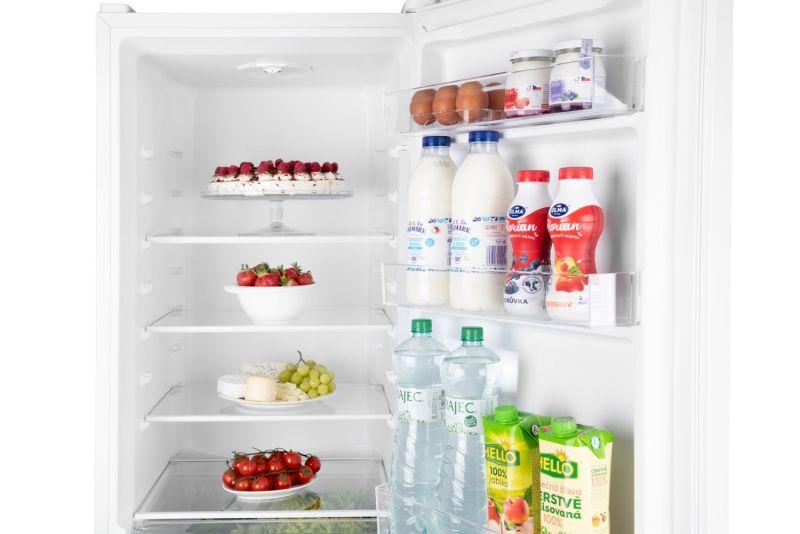 Chladiaca časť s kapacitou 197 litrov je rozčlenená štyrmi sklenenými policami, ktoré dopĺňa spodný box na ovocie a zeleninu. Nechýbajú ani praktické priehradky vo dverách. Mraznička potom ponúka objem 71 litrov s tromi transparentnými zásuvkami pre dokonalý prehľad o uložených potravinách.
