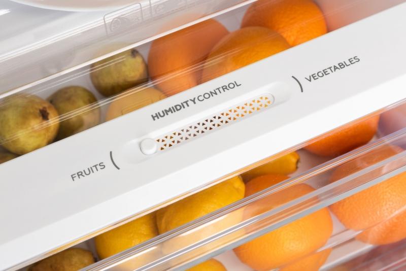Priestor rozdeľujú 3 sklenené police z bezpečnostného skla, vďaka ktorým budete mať vždy prehľad o všetkých surovinách v chladničke. Dve objemné zásuvky vám poslúžia na uchovávanie ovocia a zeleniny. Chladničke nechýba ani FRESH zóna na uchovávanie čerstvého mäsa a rýb. Úložný priestor dopĺňajú 4 praktické priehradky na dverách, ktoré sú vhodné na uchovávanie mlieka či studených omáčok.