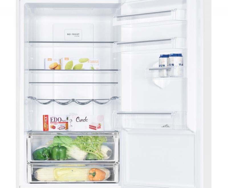 Moderná a praktická kombinovaná chladnička ETA bude kráľovnou každej kuchyne. So svojím veľkorysým celkovým objemom 347 litrov sa pohodlne postará o jedlo celej rodiny. Svojou spotrebou však do rodinného rozpočtu nezasiahne. Energeticky je chladnička zaradená do úspornej triedy C.