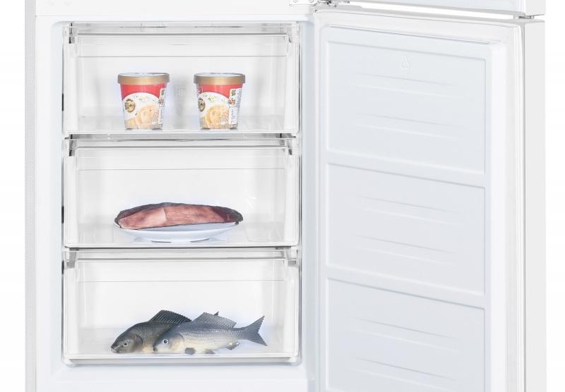 Dostatočný priestor chladnička poskytne aj pre vaše mrazené potraviny. Objem mrazničky 104 litrov vám bude stačiť na pohodlné uschovanie mäsa, húb aj zmrzliny. S výkonnou triedou mrazenia **** a klimatickou triedou SN/N/ST/T môžete uchovávať potraviny dlhodobo mrazené bez straty kvality. Mraziaca kapacita je 6 kg za 24 hodín, pokiaľ tak máte veľký nákup, chladnička je schopná za 24 hodín zamraziť 6 kg potravín.