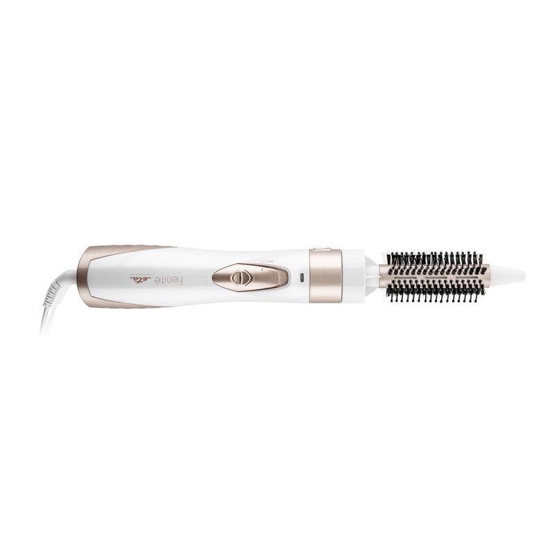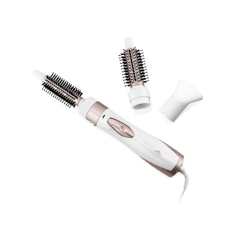 Horkovzdušný kartáč ETA FENITÉ sa postará o dokonalú a rýchlu úpravu vašich vlasov. Medzi príslušenstvom nájdete ondulačný nadstavec s priemerom 21 mm, guľatý nadstavec so zmiešanými hrotmi o priemere 31 mm a vzduchový koncentrátor, vďaka ktorému využijete kartáč taktiež ako fén. Výmena a nasadzovanie jednotlivého príslušenstva je úplne intuitívna a ľahká.