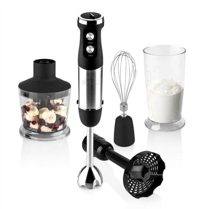 Tyčový mixér je dôležitou súčasťou každej kuchyne. Pri varení Vám bude veľkým pomocníkom a všetko Vám spoľahlivo pomixuje či ušľahá. Presne takýmto pomocníkom je aj tyčový mixér ETA Sapelo 5013 90010. Ten sa vďaka svojmu elegantnému čiernemu designu s nerezovými prvkami stane skvelým doplnkom Vašej kuchyne. Prístroj si vďaka pútku môžete zavesiť kdekoľvek v kuchyni. Jeho jedinečný povrch z príjemného materiálu „soft touch“ a pohodlná ergonomicky tvarovaná rukoväť zaistí, že sa Vám prístroj nebude šmýkať v rukách a manipulácia s ním bude jednoduchá a rýchla.