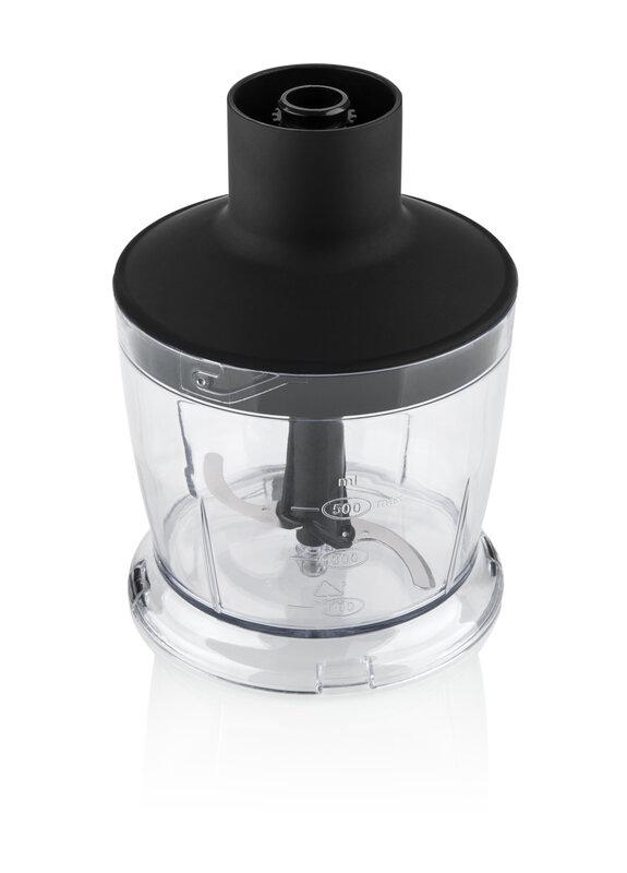K tyčovému mixéru obdržíte tiež bohaté príslušenstvo, ako je napríklad nadstavec na šľahanie s prevodovkou pre zaistenie optimálnych otáčok. Ďalej pracovnú nádobu s vekom o objeme 700 ml a špeciálny nadstavec na roztláčanie zemiakov a prípravu zeleninových či ovocných pyré. Medzi ďalšiu výbavu patrí tiež vrecko 500 ml s kosákovitým nerezovým nožom a protišmykovými nožičkami nádoby, ktoré zaisťujú stabilitu.