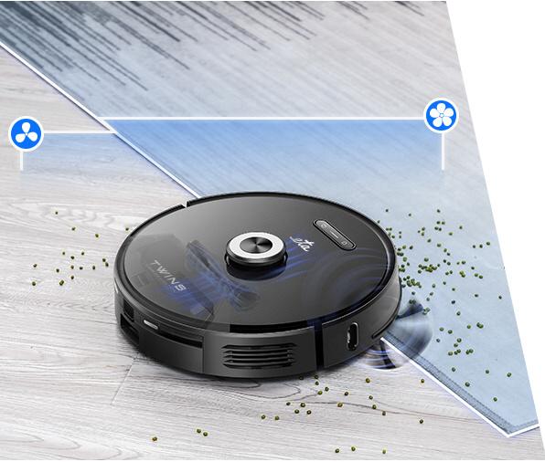Upratovanie domácnosti je efektívnejšie vďaka vylepšenej laserovej navigácii Laser+ 5.0. Tá umožňuje presnejší výpočet vzdialenosti od ostatných predmetov, nemusíte sa tak báť otlčeného nábytku či poškodenia robota. So svojou kompaktnou výškou 9,6 cm sa pohodlne dostane aj pod nižší nábytok. Odolné kolieska s pohonom prekonávajú nerovnosti a problém mu nerobia ani prechodové lišty a prahy do výšky 1,5 cm. Po povysávaní zvládne ETA Twins podlahu i umyť. Intenzitu zvlhčovania si môžete v aplikácii ľahko prispôsobiť podľa aktuálnych potrieb.