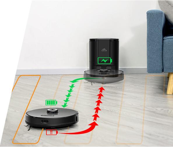 Skvelý výkon zaisťuje digitálny motor s extra dlhou životnosťou. Trojnásobná filtrácia s kvalitným HEPA filtrom zachytí aj tie najjemnejšie čiastočky nečistôt a prachu. Laserová navigácia Laser+ 5.0 efektívne zmapuje celú miestnosť a pri upratovaní nevynechá jediné miesto. Robotický vysávač je vybavený aj hlasovým sprievodom na lepšiu komunikáciu, môžete si tak vybrať český alebo anglický jazyk.