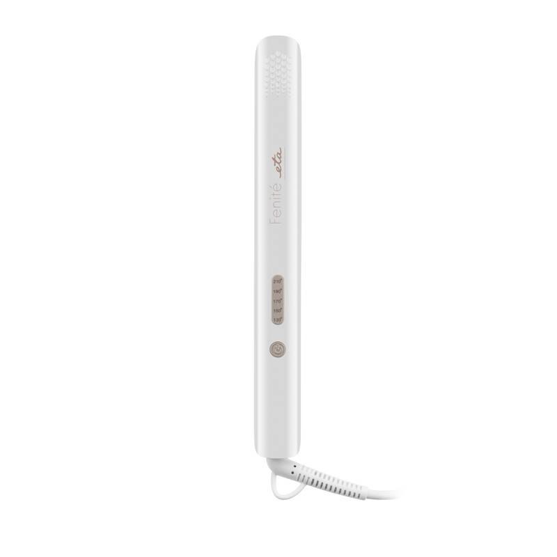 Chcete si užívať každodennú radosť z rovných vlasov? Pomocou žehličky na vlasy ETA833690000 Feni to pre vás bude ľahké. Jej moderný a elegantný dizajn v perleťovo bielej farbe vás osloví už pri prvej pohľadu. Vďaka cestovnému puzdru môžete žehličky kedykoľvek zabaliť sebou na cesty.