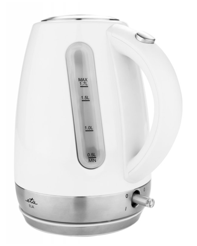 - Rýchlovarná kanvica ETA Ela 8598 90030 v bielom nerezovom prevedení zaujme ľahko čistiteľným povrchom.