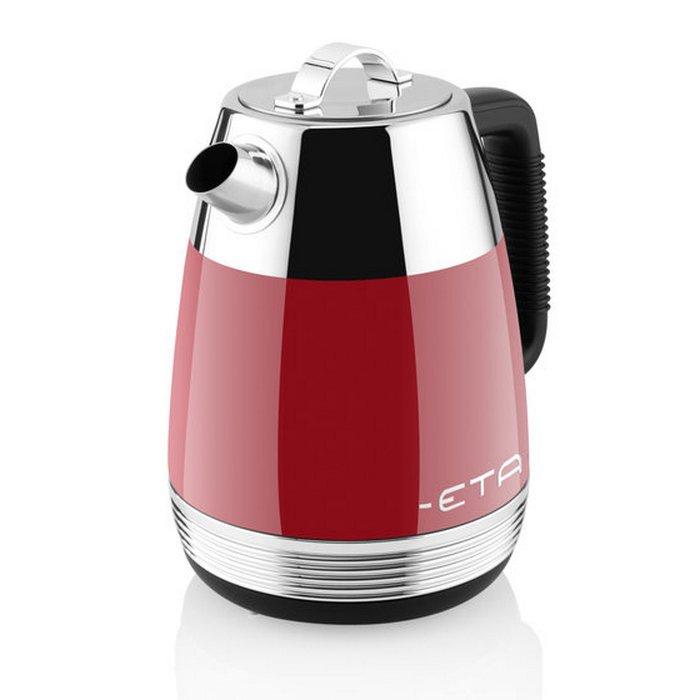 Červená nerezová kanvica ETA Storio o objeme 1,7 l s vyberateľným filtračným sitkom, svetelnou signalizáciou a unikátnym, ale moderným retro.