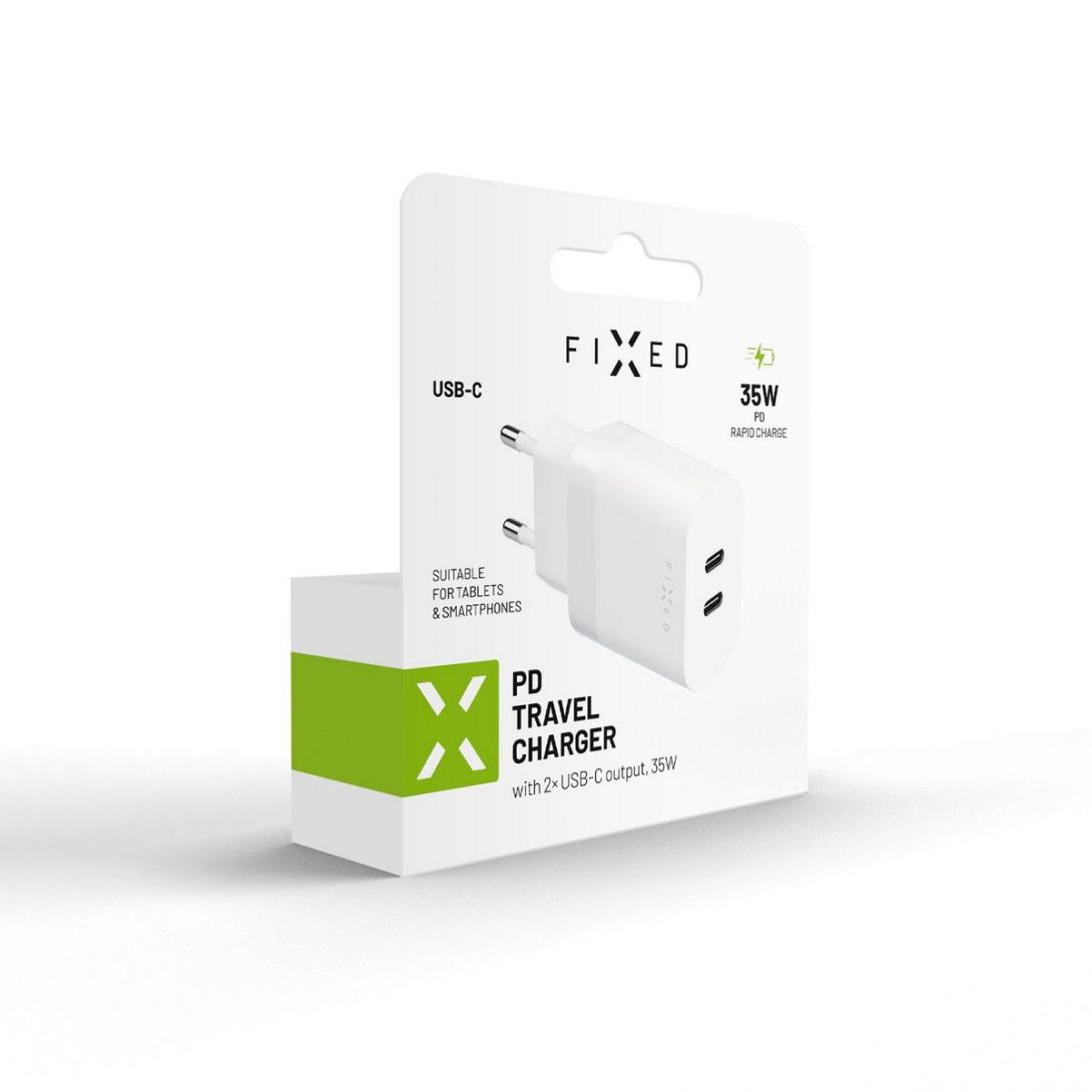 FIXED FIXC35-2C-WH SIETOVA NABIJACKA S 2X USB-C VYSTUPOM, PODPORA PD, 35W, BIELA