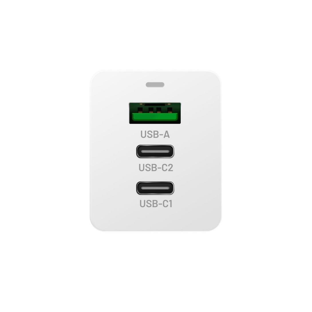 - max. výstup (USB-C1) + (USB-C2) + (USB-A): 45+15W (60W)