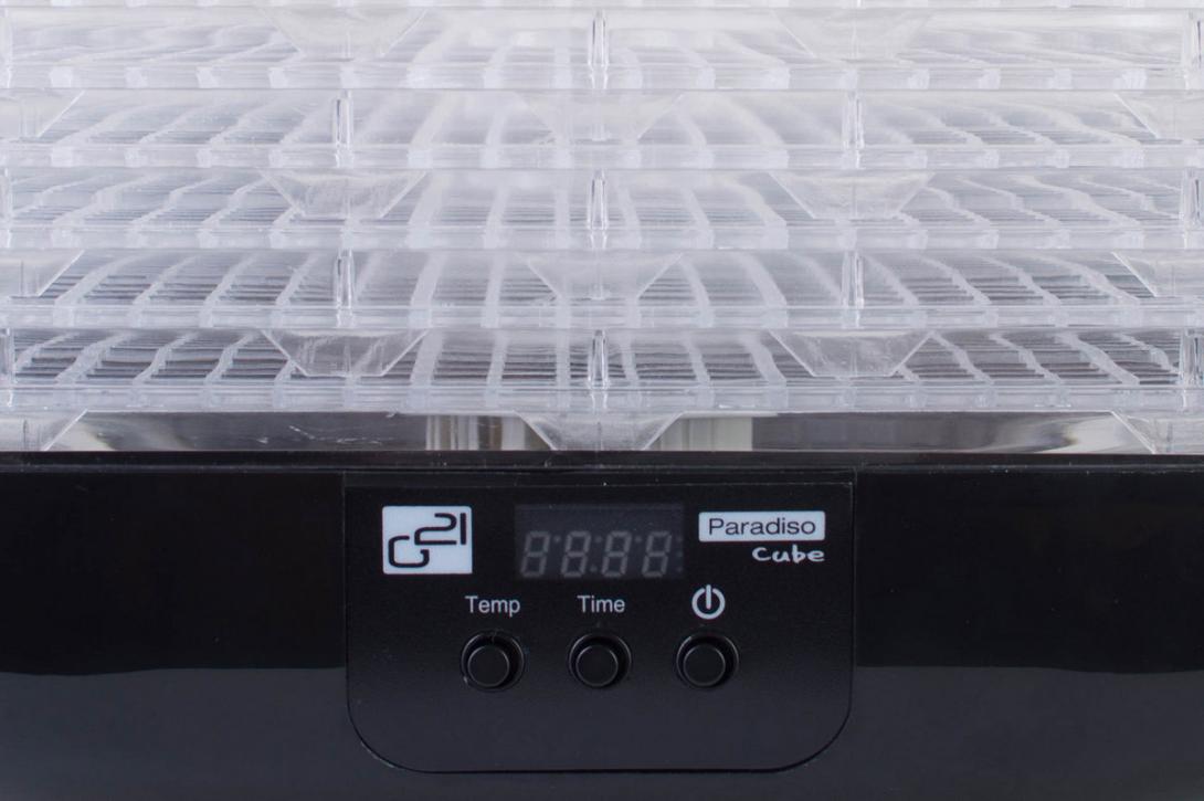 Malá, kompaktná, účelne riešená a užívateľsky prívetivá. S digitálnym nastavením teploty, ukazovateľom času a jednotlačidlovým ovládaním. A s názvom, ktorý nevznikol náhodou. Zoznámte sa so sušičkou ovocia G21 Paradiso Cube a pripravte sa na nový raj vo svojej kuchyni.