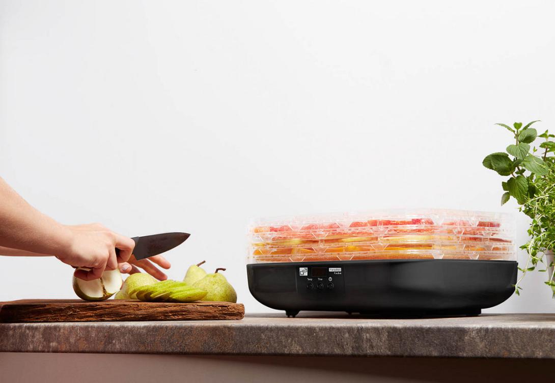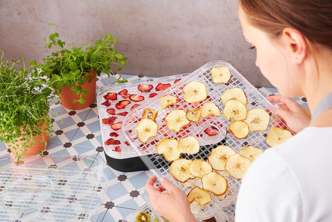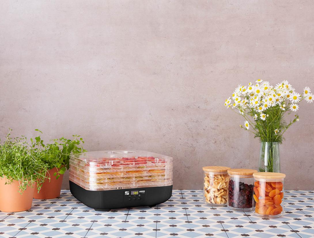 Svojimi rozmermi 34 cm x 34 cm a výškou 21 cm sa radí k tým menším na trhu. Výkonom 350 W je zase jednou z najlepších vo svojej triede. Ľahko ju umiestnite aj na malú kuchynskú linku alebo na poličku na chate. Sušiť tak môžete hneď, keď sa vrátite z lesa s košíkom húb alebo zo záhrady s čerstvo natrhaným ovocím.