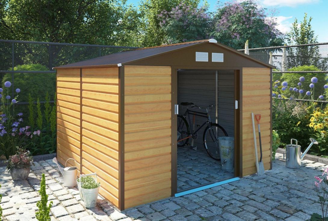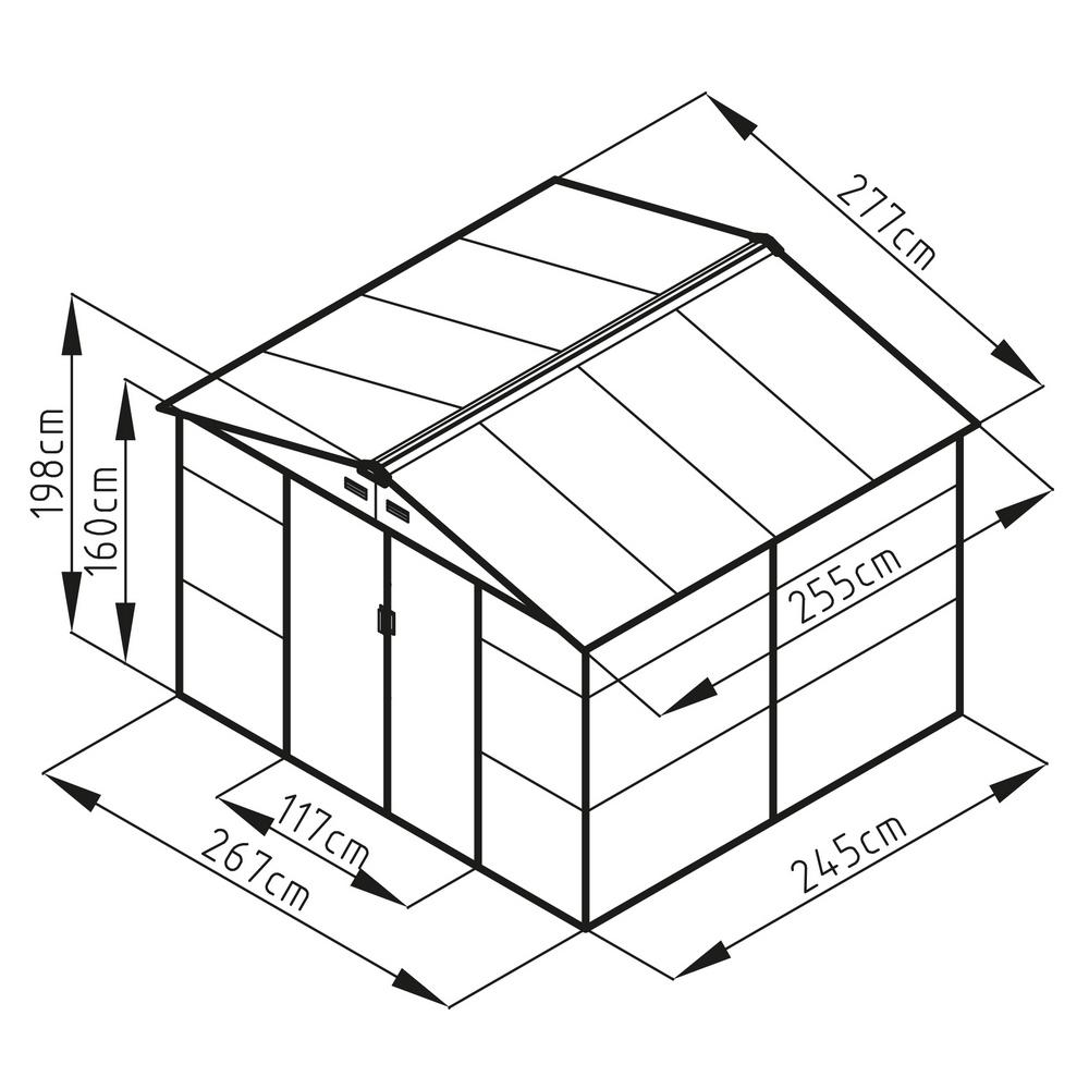 Záhradné domčeky na náradie v modernom dizajne sa hodí do každej záhrady. Domček má dvoje veľké posuvné dvere a 160 cm vysoký vstupný otvor, teda do neho budete mať pohodlný prístup.
