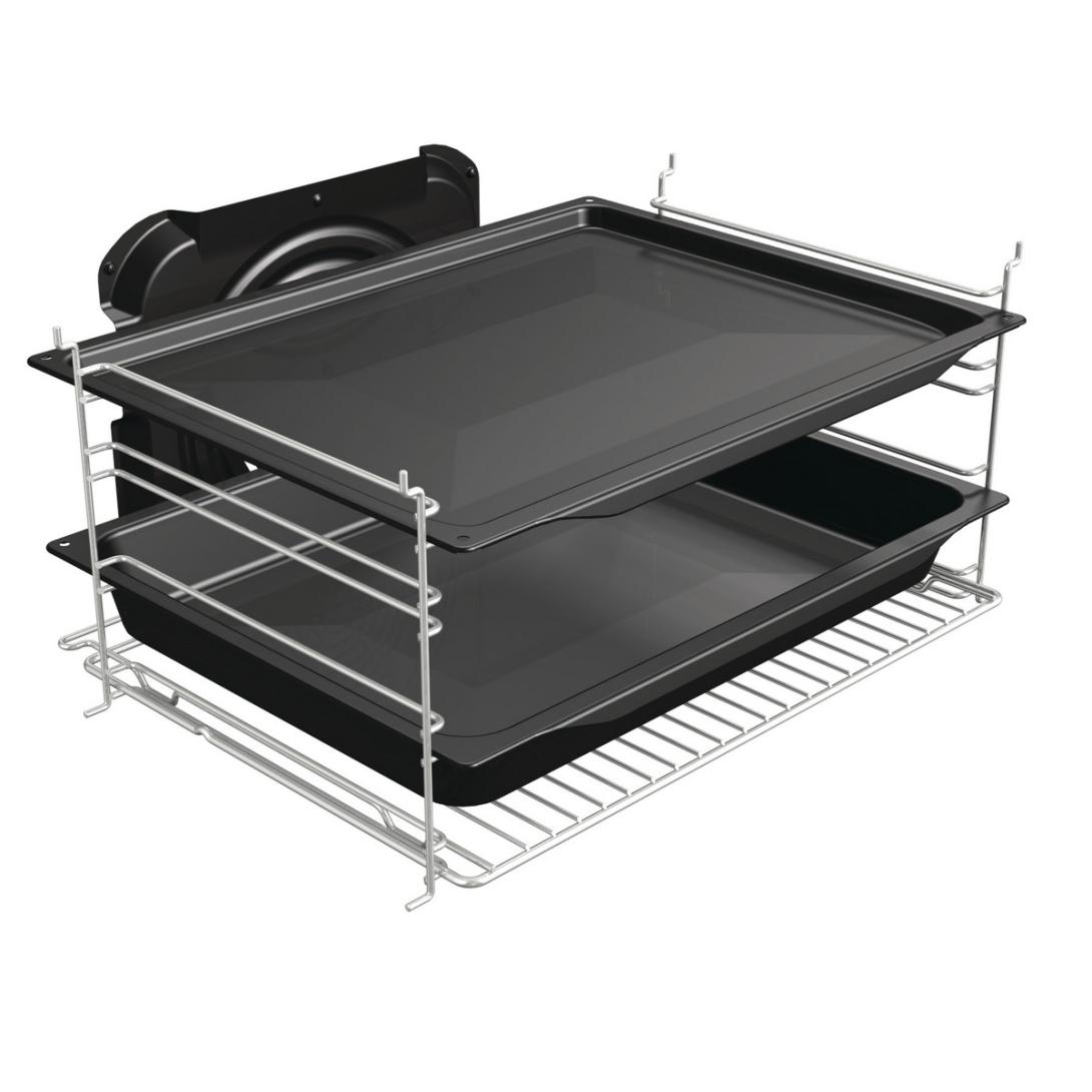 Priestrannejšie rúry umožňujú piecť väčšie množstvo jedál - a to nielen vďaka cirkulácii vzduchu na všetkých úrovniach, ale tiež kvôli 46 cm širokým plechom na pečenie, ktoré sú k dispozícii v štandardných i kompaktných rúrach. Inovatívne riešenia umožňujú plné využitie väčšej vnútornej šírky rúry. K dispozícii je tak viac priestoru pre každý plech a špičkové technológie zaisťujú, že jedlo sa upečie rovnomerne na všetkých úrovniach.