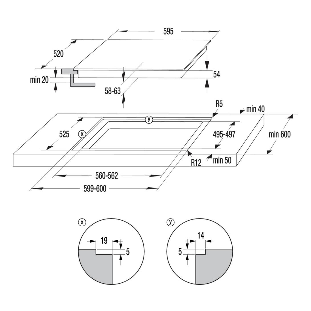 - Rozmery pre zabudovanie (šxvxh) min-max: 56-56,2 × 7,4 × 49 cm