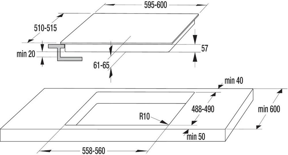 - Rozmery na zabudovanie (š × v × h): 56 × 4,3 × 49 cm