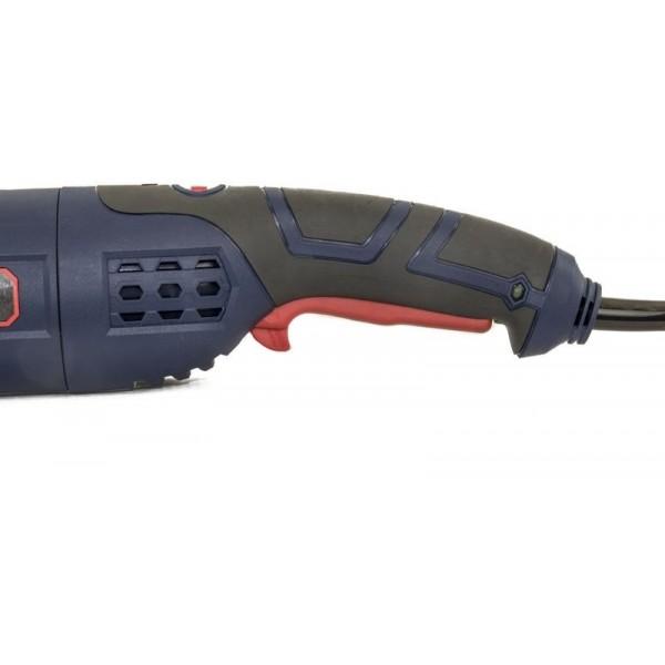 Nízkoprofilové robustné kovové prevedenie hlavy prevodovky zabezpečuje prácu bez vibrácii, aj na ťažko dostupných miestach. Svetelný indikátor napätia. Rýchloupínací ochranný kryt, nastaviteľný bez použitia náradia. Aretácia vretena pre rýchlu a jednoduchú výmenu kotúča. Prídavná rúčka nastaviteľná do 3 pozícií (3x90 °) pre flexibilnú a optimálnu pracovnú pohodu. Plynulá regulácia otáčok. Dodávka bez kotúča.