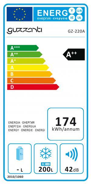 - GUZZANTI GZ 220A patrí do energeticky úsporné triedy A++ a počas jedného roka prevádzkovania spotrebuje okolo 174 kWh elektrickej energie.