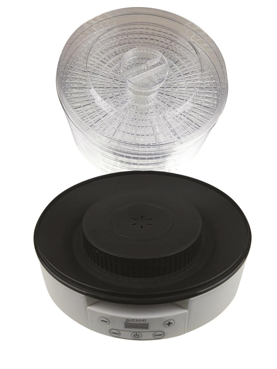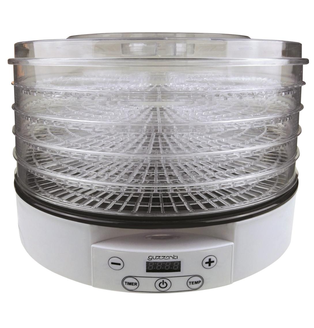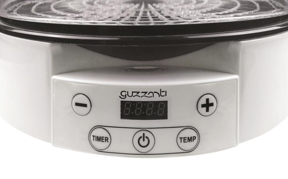 Sušička ovocia, LED display pro nastavenie teploty sušenia 35 - 70°C pre sušenie rôznych druhov potravín pri tej správnej teplote, Digitálny časovač 1 – 12 hodín s automatickým vypnutím, Ventilátor zaisťujúci rovnomerné a efektívne sušenie.