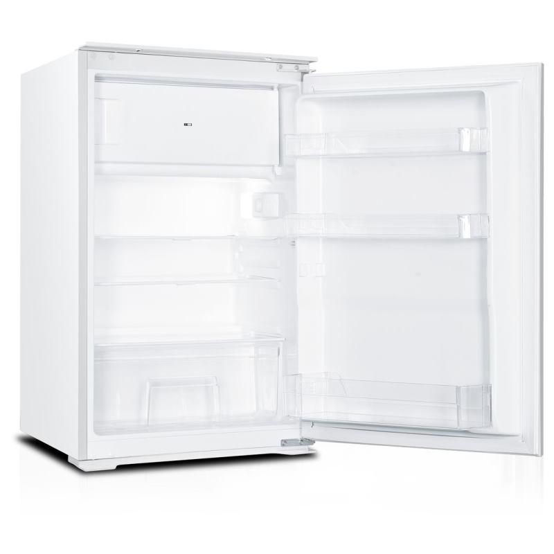 Monoklimatická vstavaná chladnička, energetická trieda F, spotreba el. energie 179kWh za rok, malá hlučnosť (41dB), 2x sklenené police, celkový objem netto 120 l, objem chladničky 105 l, objem mrazničky (4 hviezdičky) 15 l, vnútorné LED osvetlenie, priehradka na ovocie a zeleninu, klimatická trieda N, ST