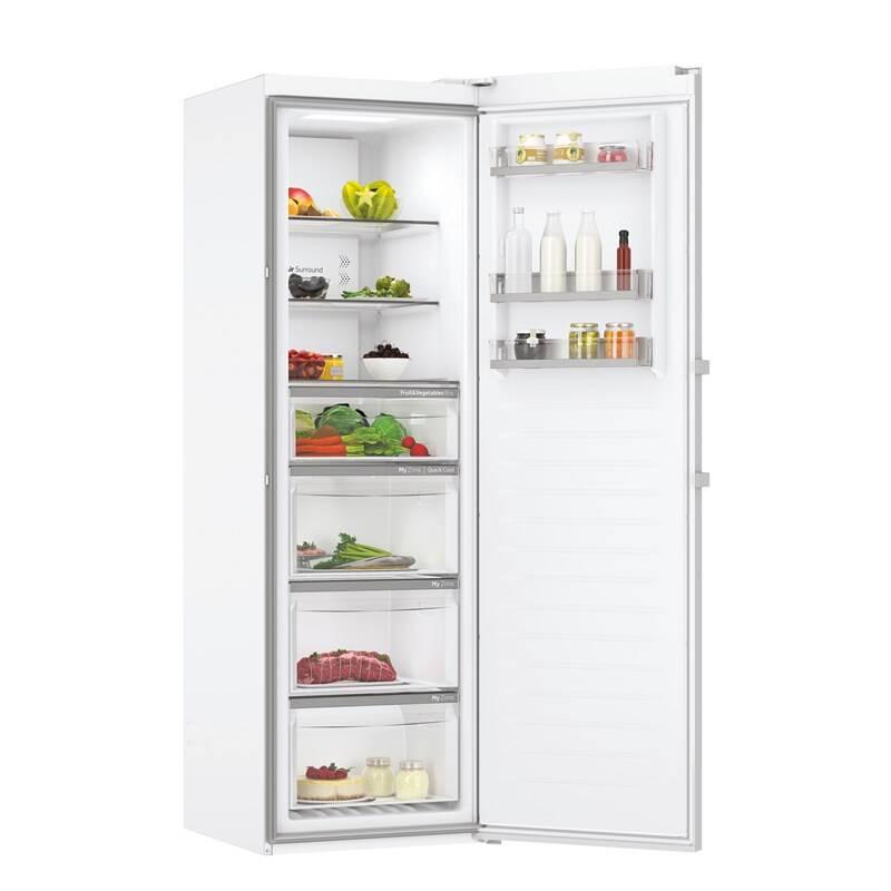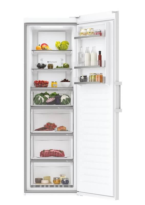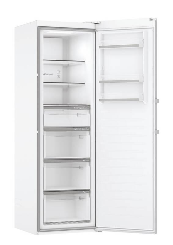 Monoklimatická chladnička v bielom dizajne, Objem chladničky: 330 l, Hlučnosť: 38 dB, Beznámrazová technológia Total No Frost, Funkcia Rýchle chladenie v celom priestore