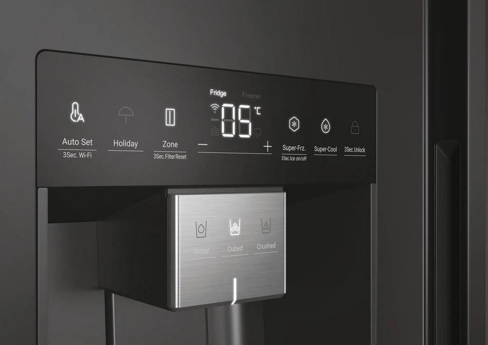 Americká chladnička, Celkový úžitkový objem 601 l, Spotreba el. energie 334 kWh/rok, Trieda mrazenia ****, Hlučnosť 36 dB