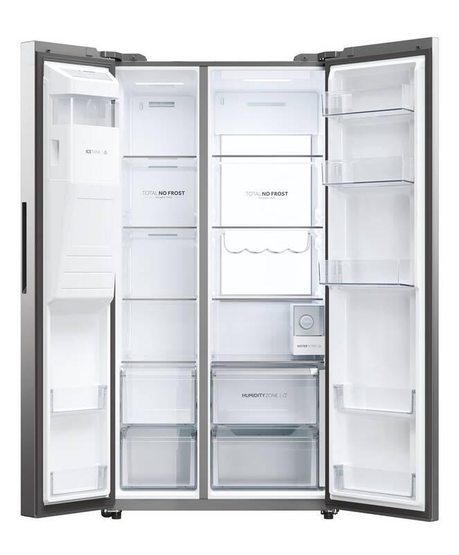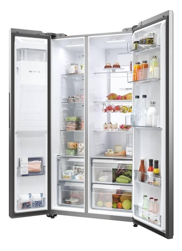 Americká chladnička, Celkový objem chladiacej časti (l) 391, Ročná spotreba elektrickej energie (NEL 2020) 214, Emisie akustického hluku (NEL 2020) 35