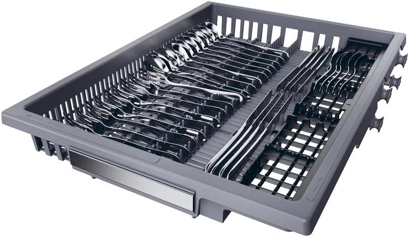 Nový tretí kôš Haier I-Pro Shine je skladací a vyberateľný: možnosti, ktoré vám pomôžu ľahko vytvoriť viac miesta pre poháre a veľký kuchynský riad. Navyše budú vaše príbory vždy dobre organizované a zaistené vďaka inovatívnej mriežke pre skvelé výsledky umývania.