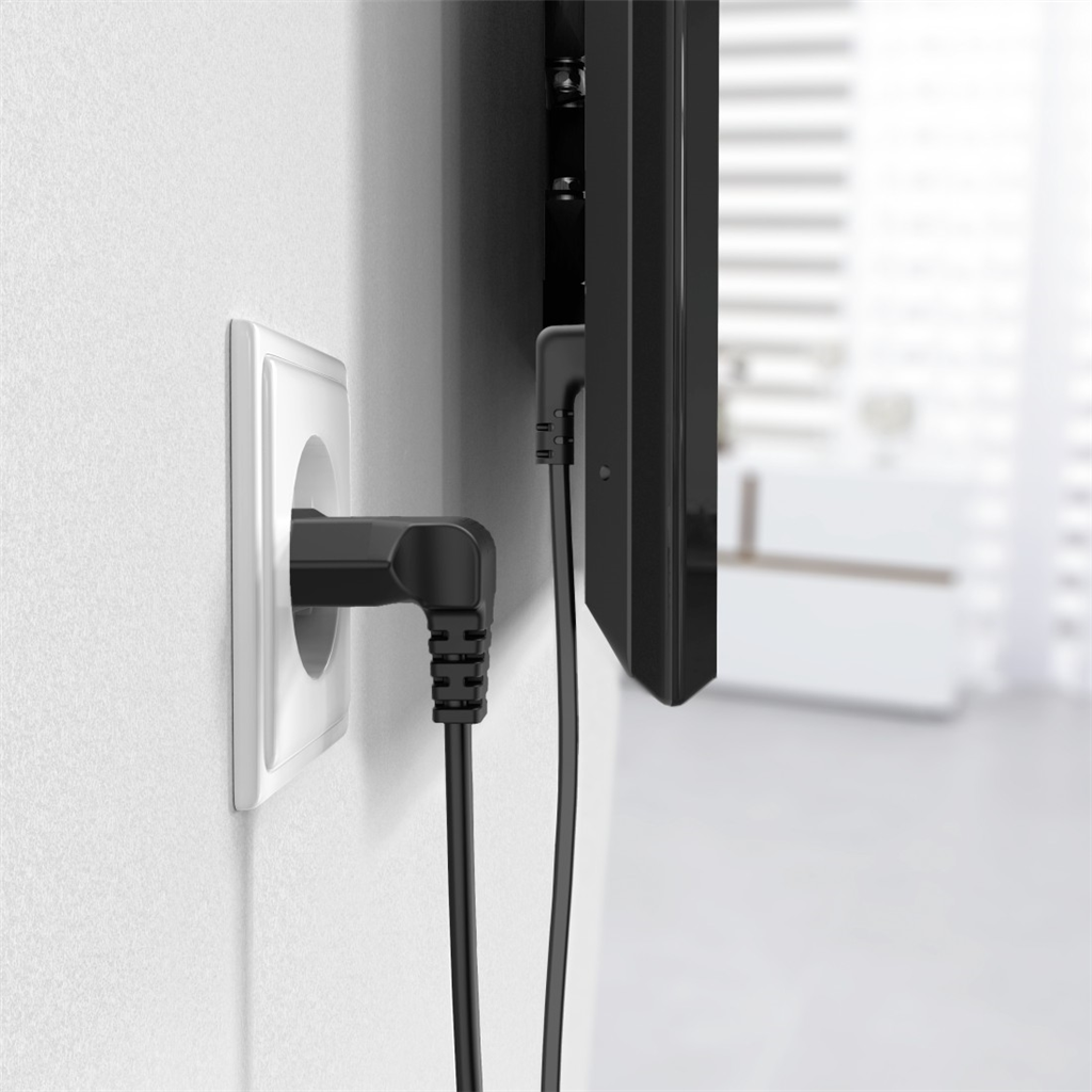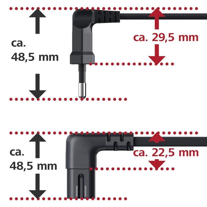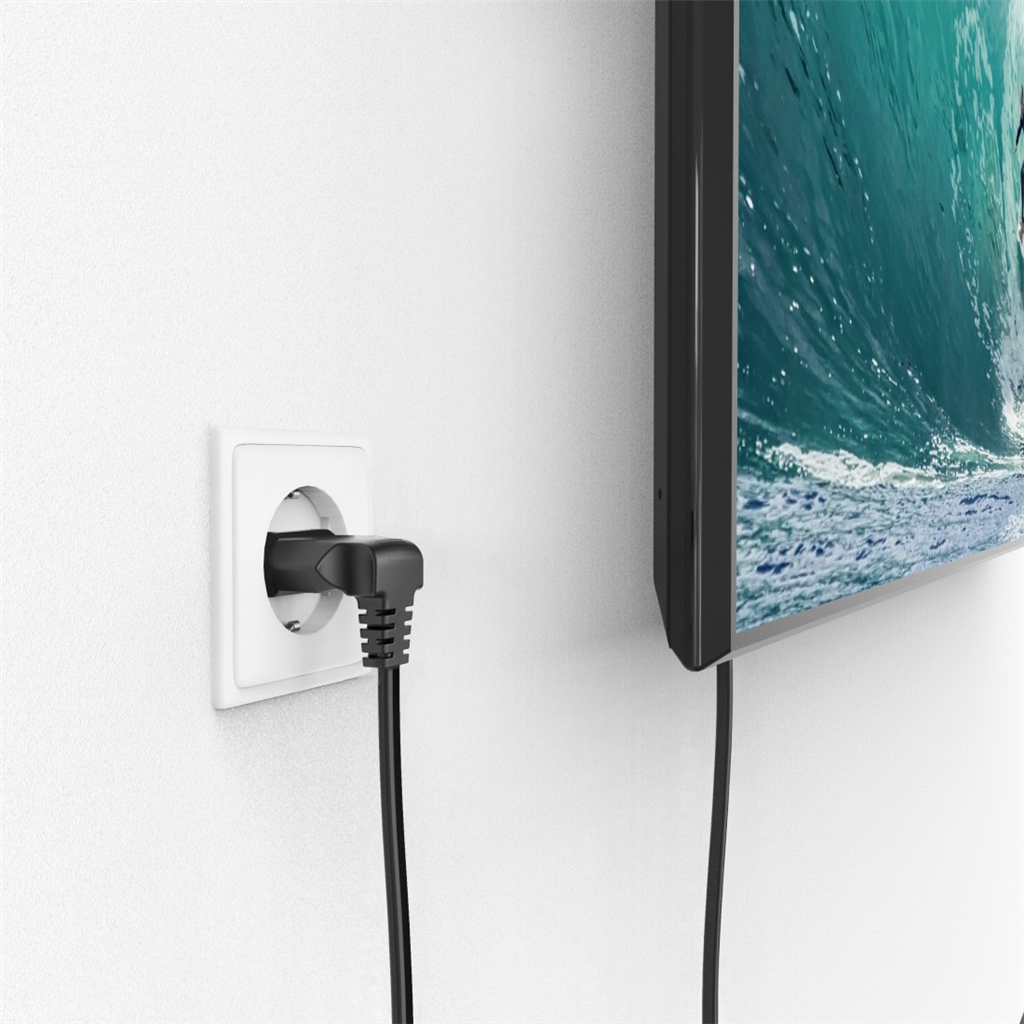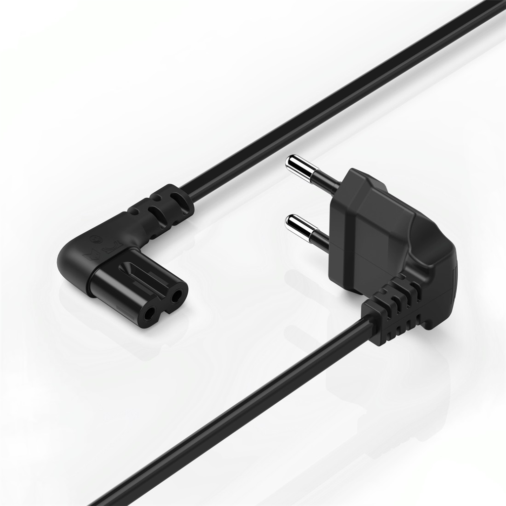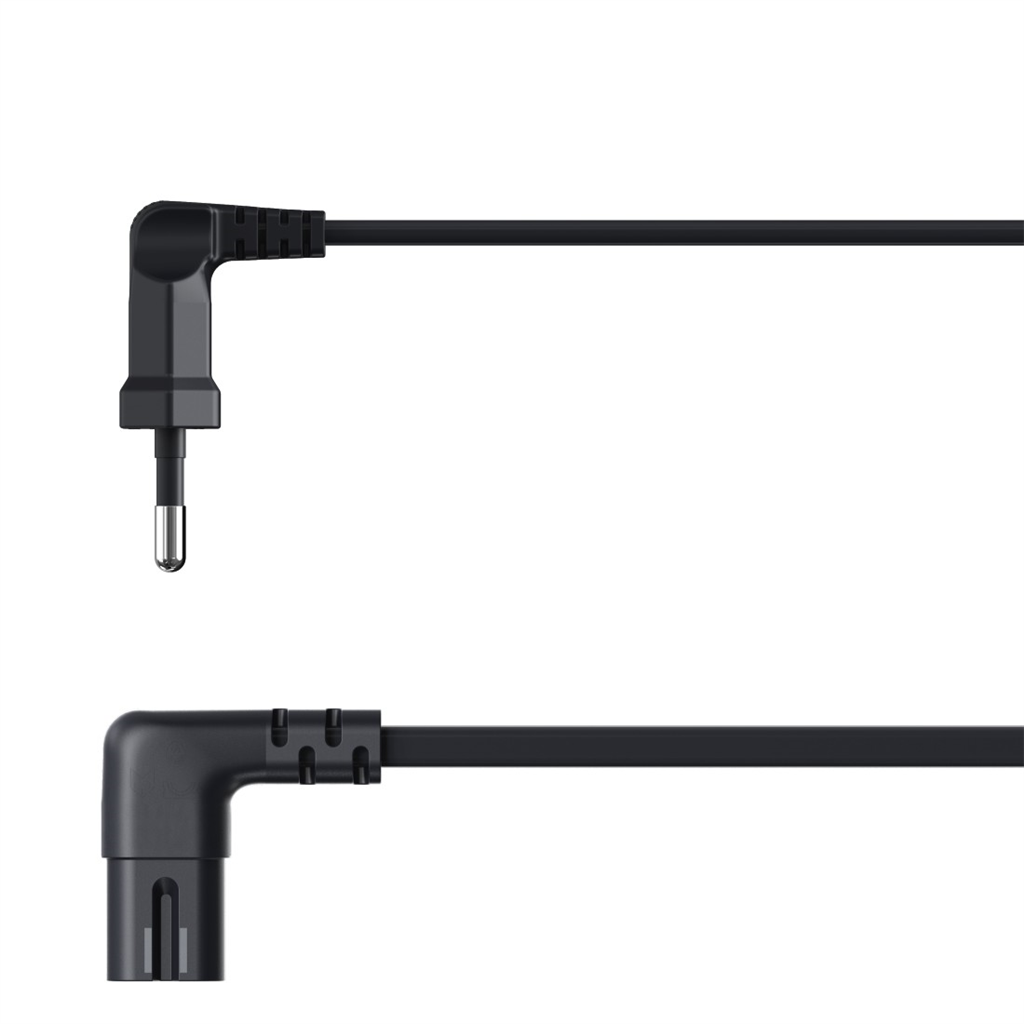 Napájací kábel, vhodný napr. pre rádiá, televízory, notebookové zdroje atď., kolmé 2-pólové Euro vidlice, ideálne pri nedostatku miesta, napr. za televízorom, prierez vodičov: 0,75 mm2, max. 2,5 A (230 V), dĺžka: 5 m