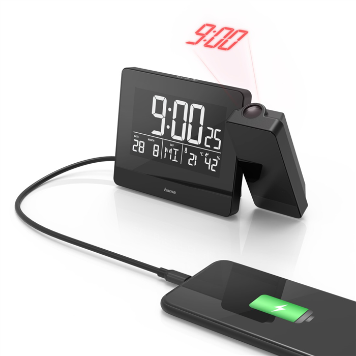 - Ďalšie funkcie Hodiny s rádiovým príjmom času (DCF signál) | Projekcia | Teplomer(-9°C až + 50°C) | USB pripojenie pre napájací kábel | Vlhkomer