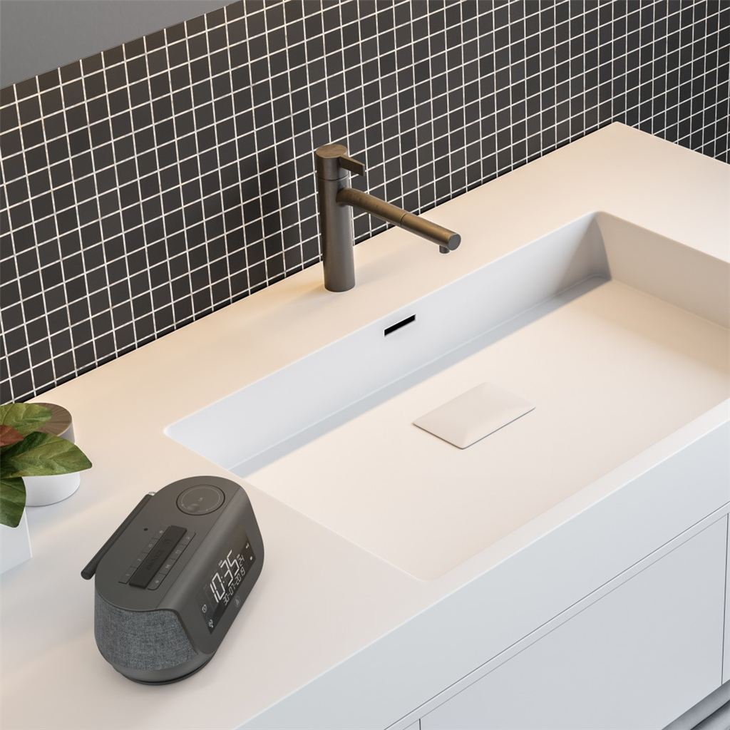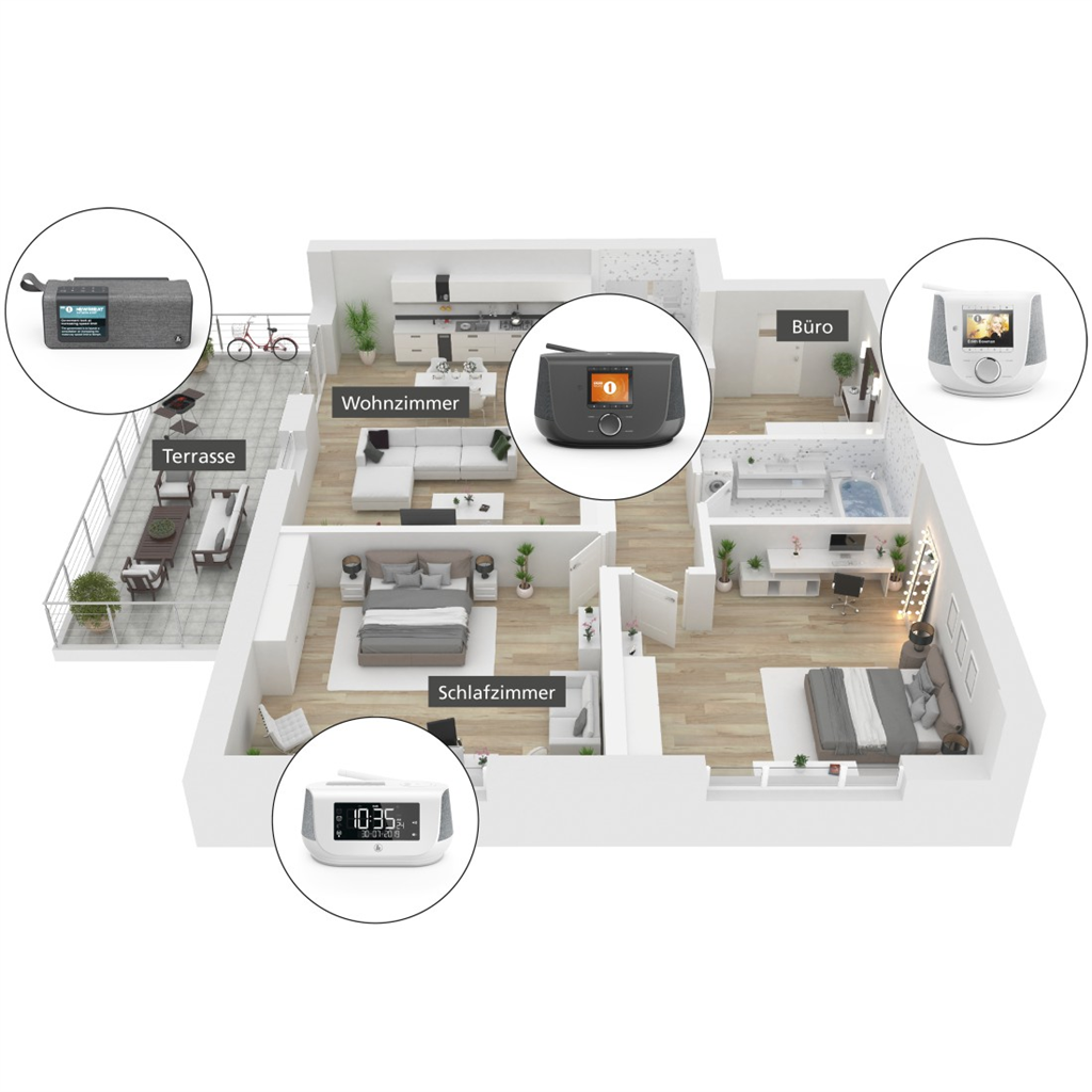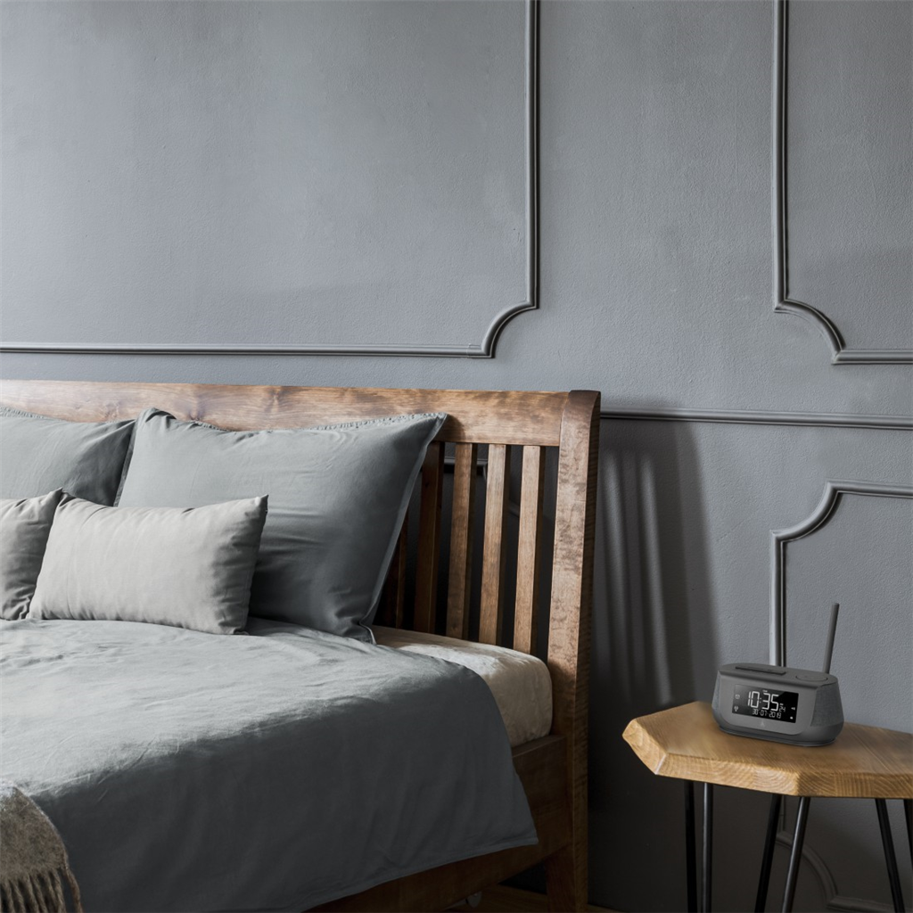 Digitálne rádio, elegantné stereo reproduktory potiahnuté tkaninou, 2 x 2 W (RMS), užite si počúvanie bez rušenia v DAB+ vysielaní, DAB/DAB+ tuner: 174 až 240 MHz (III. Pásmo), Bluetooth verzia: 5.0
