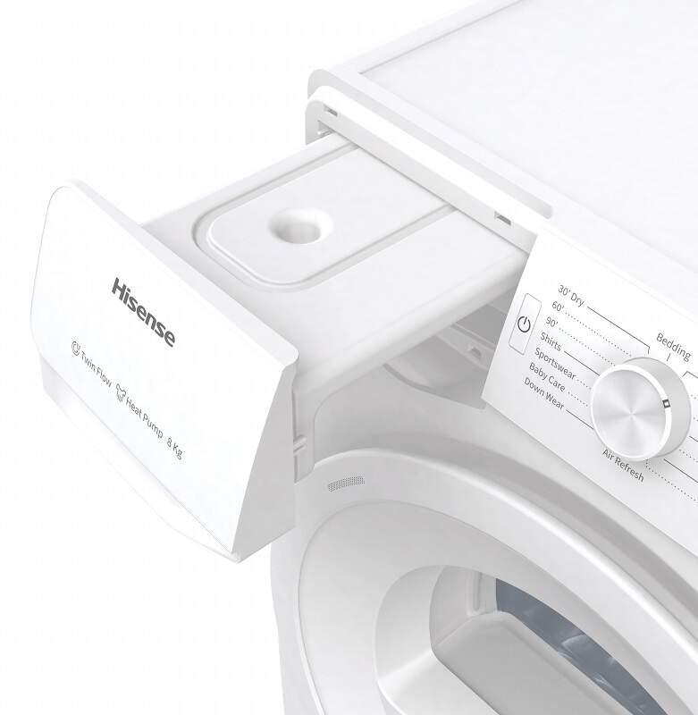 Sušička bielizne, Kapacita bubna 8 Kg, Systém sušenia kondenzácia + tepelné čerpadlo, Hlučnosť (sušenie) 65 dB