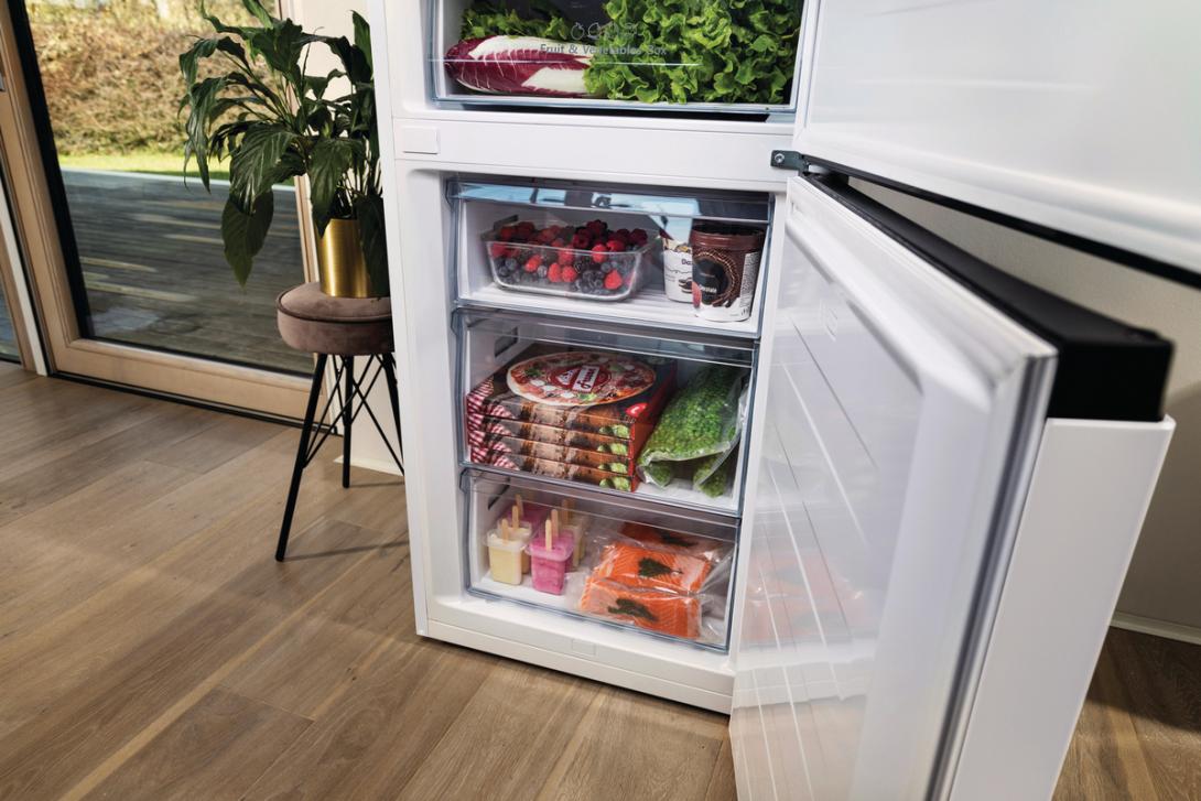 Pokiaľ hľadáte priestrannú kombinovanú chladničku a mazničku s beznámrazovou technológiou Total NoFrost, ktorá sa za vás postará o neobľúbené odmrazovanie, vyskúšajte model RB434N4AW2 od Hisense. Dizajn chladničky v bielej farbe vás určite okúzli a navyše vás poteší zóna Fresh Crisper , ktorá sa postará o ideálne podmienky pre vaše ovocie a zeleninu. Vďaka inteligentnému systému Multi Air Flow, vo vnútri rovnomerne cirkuluje studený vzduch. V prípade, že necháte dvere chladničky otvorené, upozorní vás praktický alarm. Za zmienku stojí aj veľmi podstatný detail – a to je hlučnosť. Tento model má 38 dB, takže vás počas prevádzky nebude rušiť.
