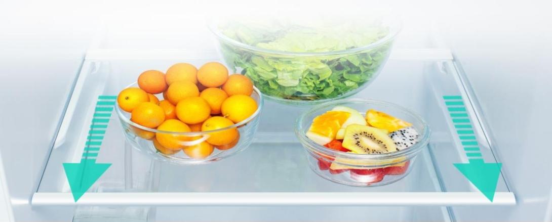 - Otváranie dvierok: Pravé otváranie dverí chladničky/ľavé otváranie dverí mrazničky