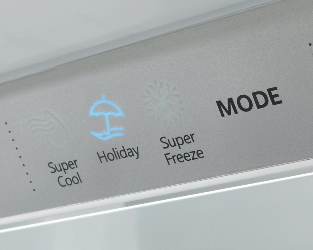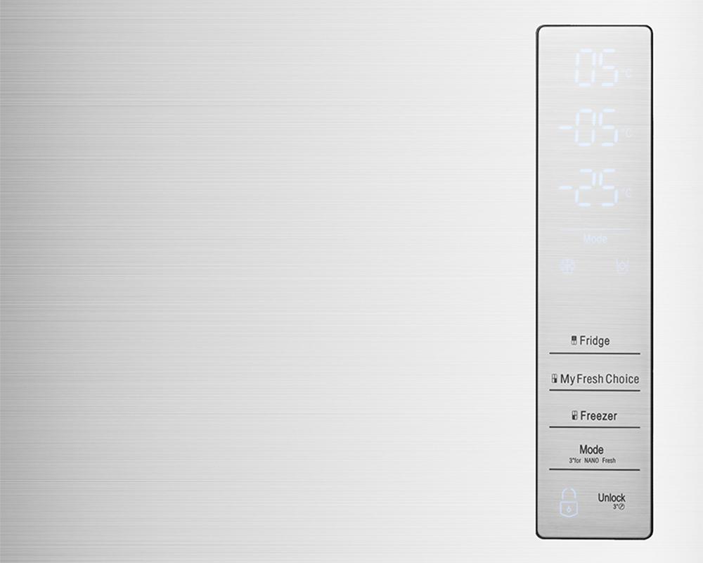 Všetky nastavenia funkcií chladničky prebiehajú cez dokonale prehľadný ovládací LED panel na prednej časti chladničky HISENSE. Nastavenie požadovanej teploty pre chladiacu alebo mraziacu časť je vďaka prehľadnému panelu veľmi jednoduché.