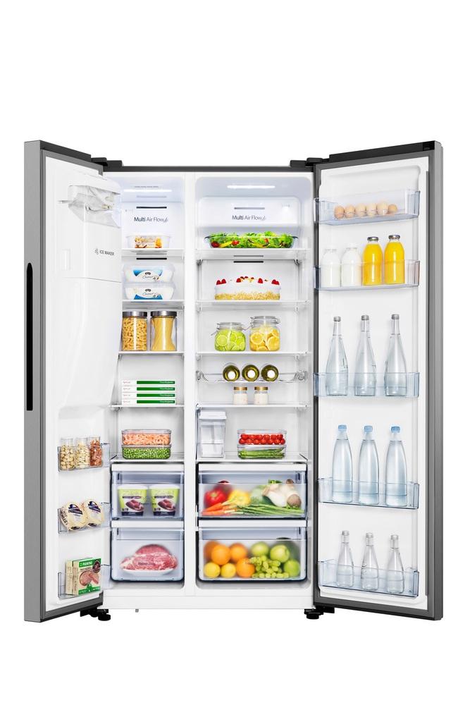 Sme si istý, že do akéhokoľvek interiéru skvele zapadne nová, dvojdverová americká chladnička Hisense RS694N4TIE, ktorá ponúka objem 371 litrov a mraznička vás poteší objemom až 185 litrov. Najväčšou prednosťou americkej chladničky je beznámrazová technológia Total No Frost, ktorá sa za vás postará o neobľúbené odmrazovanie. Chladnička spadá do novej energetickej triedy E, ktorá šetrí energiu a vašu peňaženku a vďaka inteligentnému systému Multi Air Flow, vo vnútri rovnomerne cirkuluje studený vzduch. V prípade, že necháte dvere chladničky otvorené, upozorní vás praktický alarm. Bez obáv o vaše potraviny a o spotrebu vašej chladničky, zvoľte pred odchodom na dovolenku funkciu Holiday. Prevažne v letných mesiacoch oceníte praktický dávkovač vody a výrobník ľadu, ktorý skvelo zapadá do dizajnu americkej chladničky.
